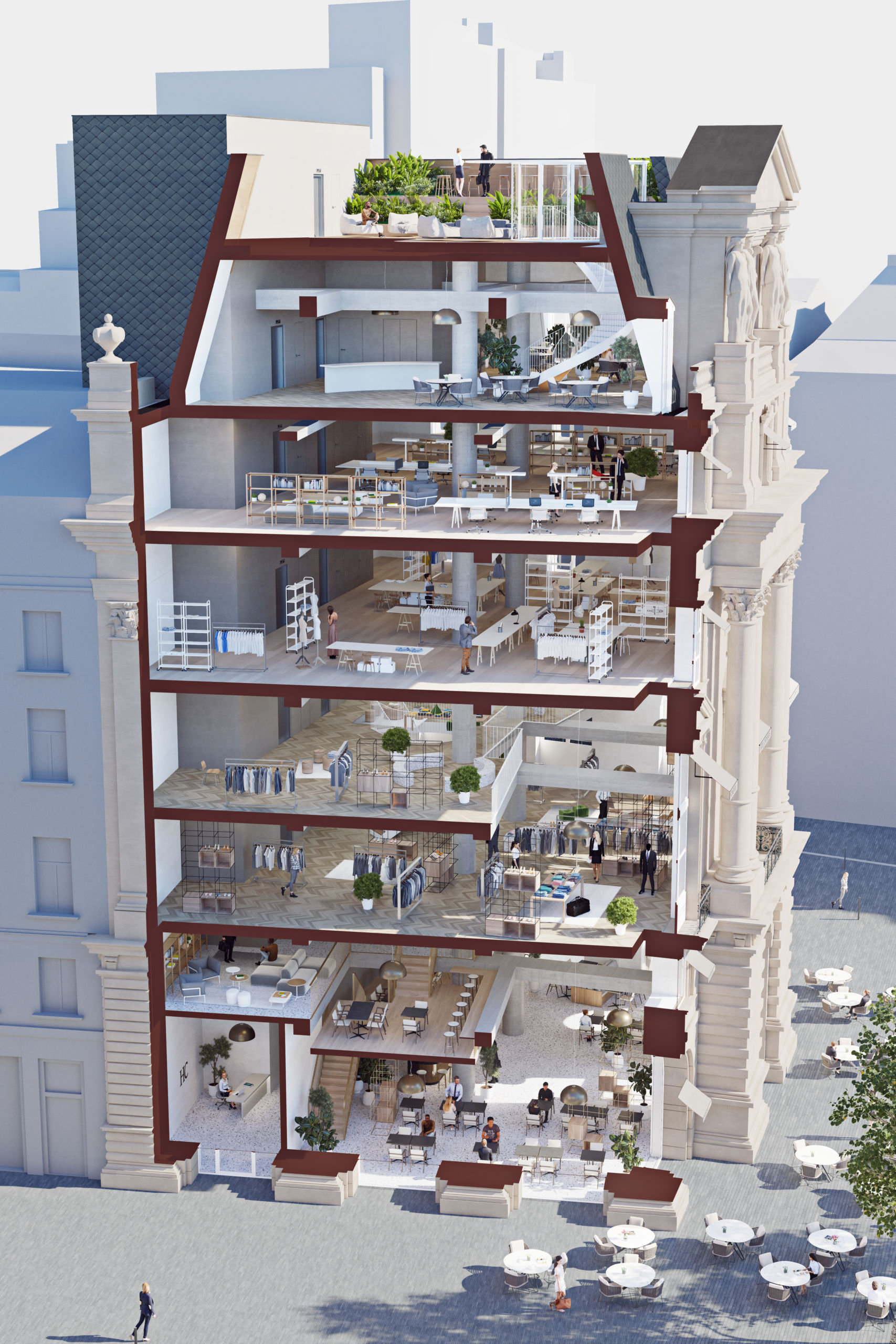 Het project heeft als ambitie om de boeg van het voormalige Hotel Continental een structurerende rol te geven in het hart van het Brusselse hypercentrum. Door dit iconische gebouw volledig te integreren in de stedelijke dynamiek van de Brouckèreplein, combineert het respect voor het patrimonium, de herwaardering van de binnenruimtes en de activering van de commerciële plint. De interventie streeft ernaar de oorspronkelijke monumentaliteit te herstellen, terwijl het flexibiliteit in het gebruik biedt die aansluit bij de hedendaagse behoeften. Het dak, ontdaan van technische installaties, wordt een zwevende buitenruimte, bedoeld als een plek van ademruimte in de dichte stad. Aan de achterzijde van het blok vullen nieuwe woningen deze strategie aan, ten voordele van een gemengde, inclusieve en levendige stad, in continuïteit met de ambities van het strategisch ontwikkelingsplan voor het stadscentrum.